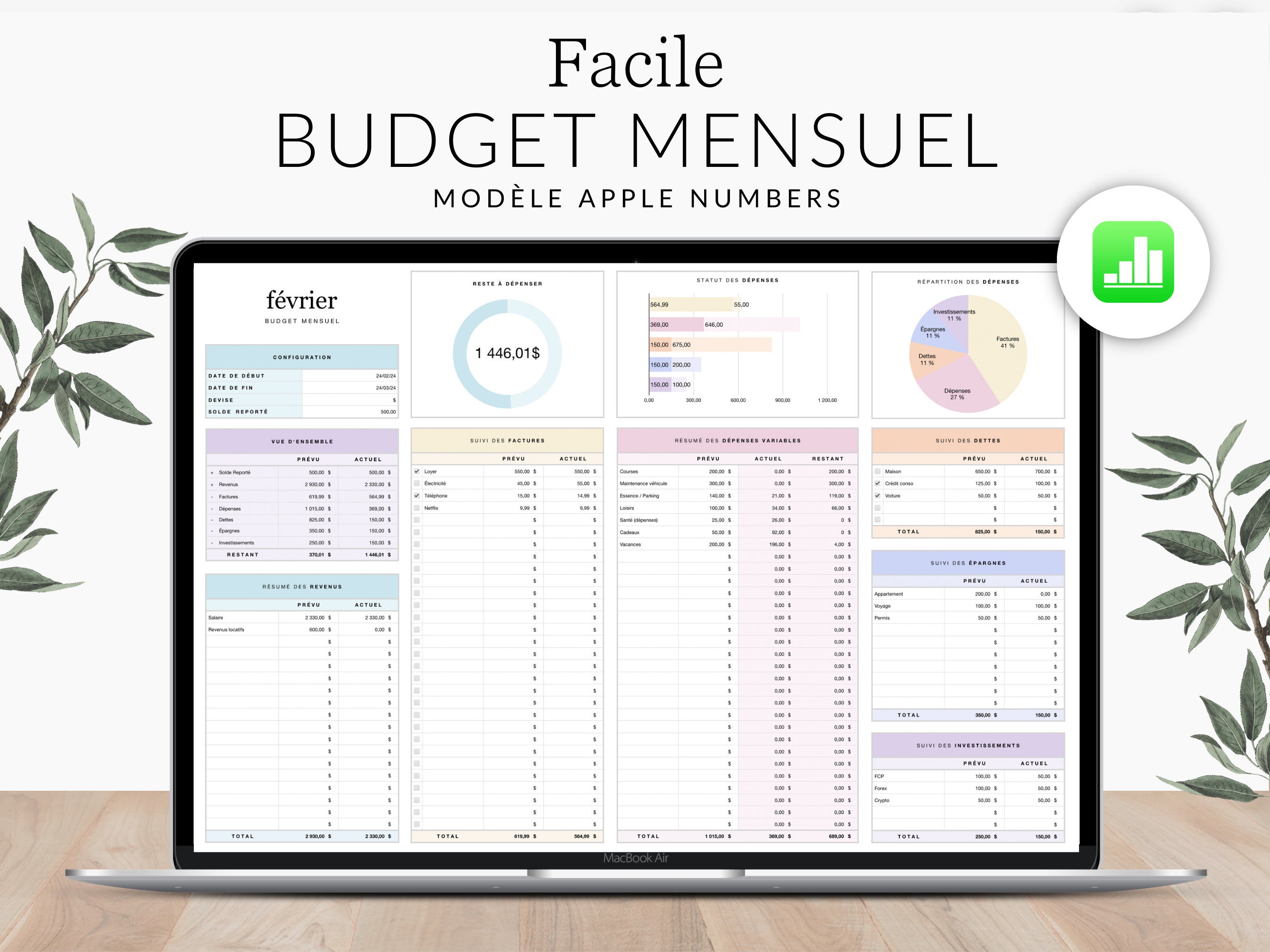Monthly Finance Planner | Budget Planner Template | Electronic Household Book | Building Assets | Money Organizer | Investing for Beginners | Apple Numbers Spreadsheet