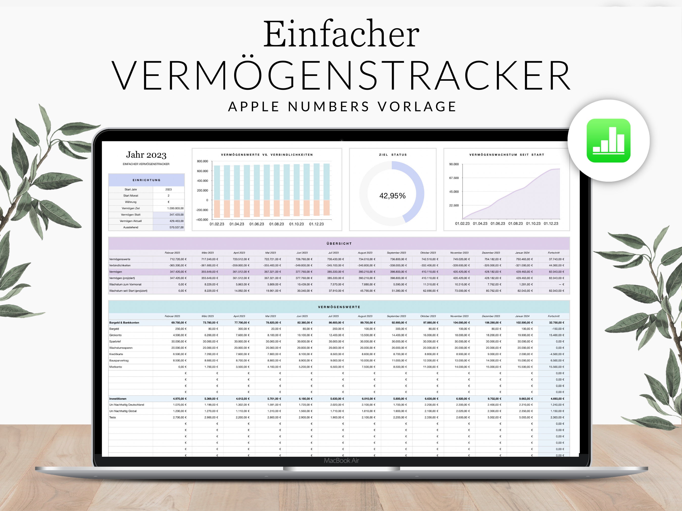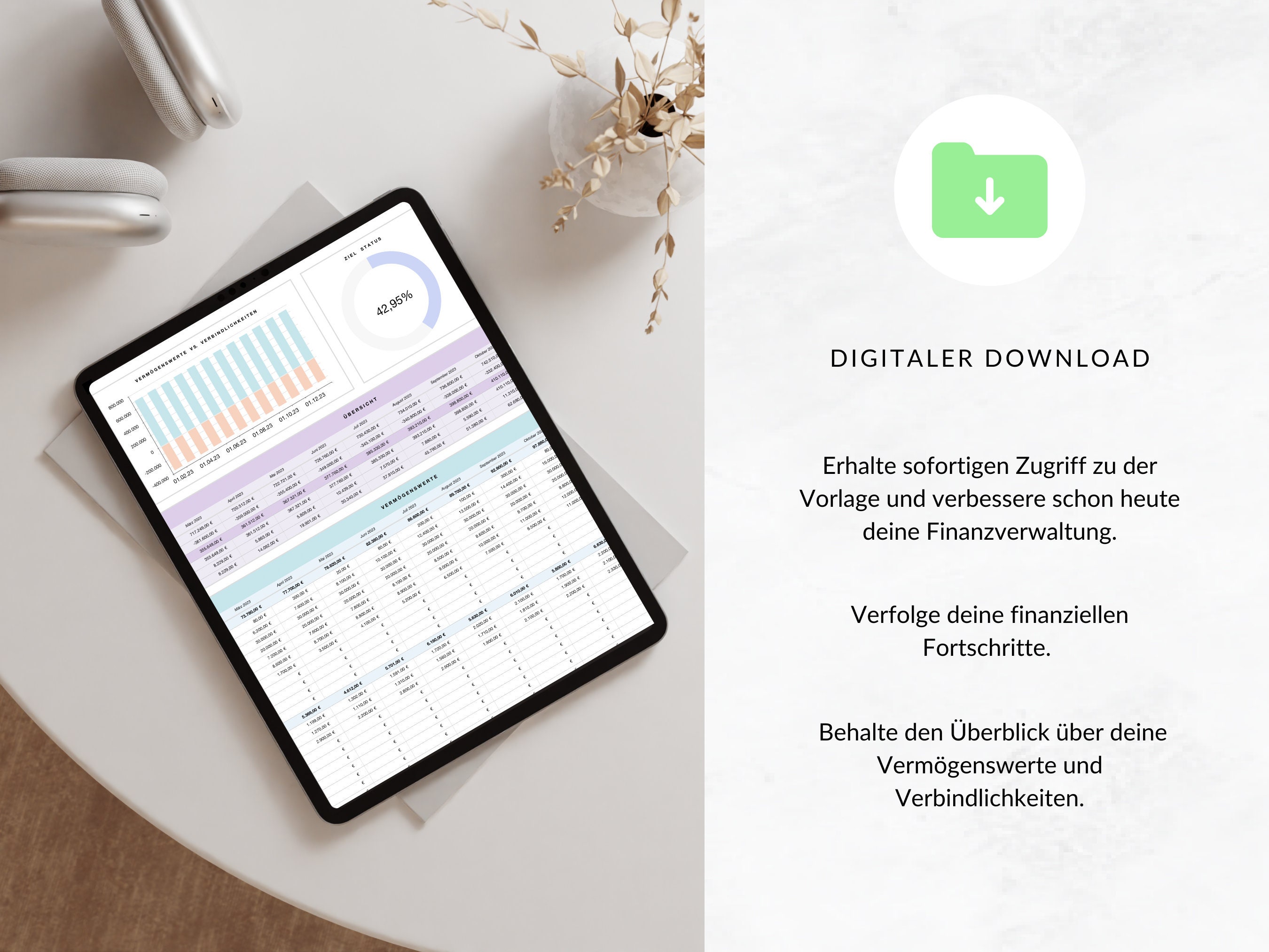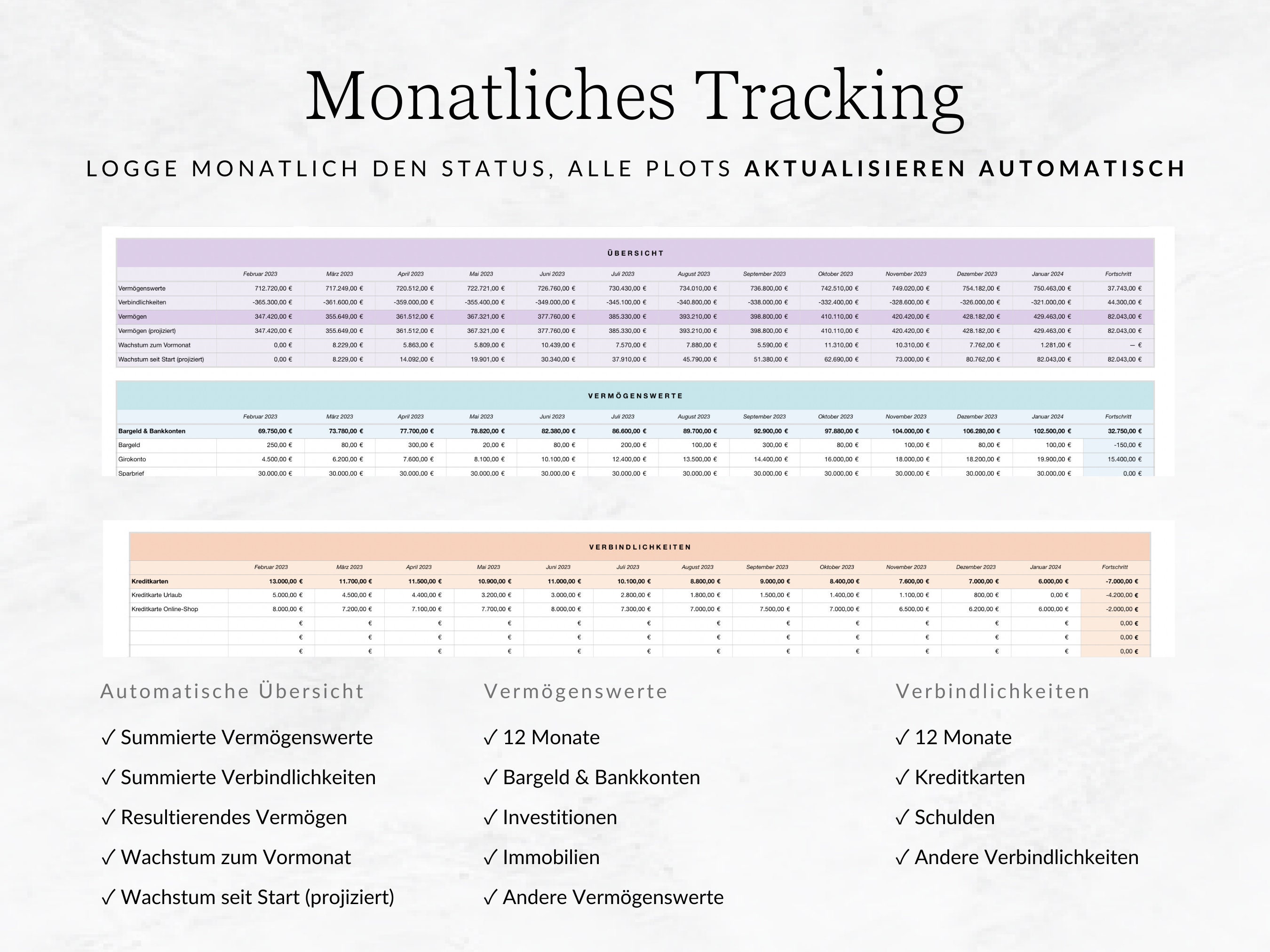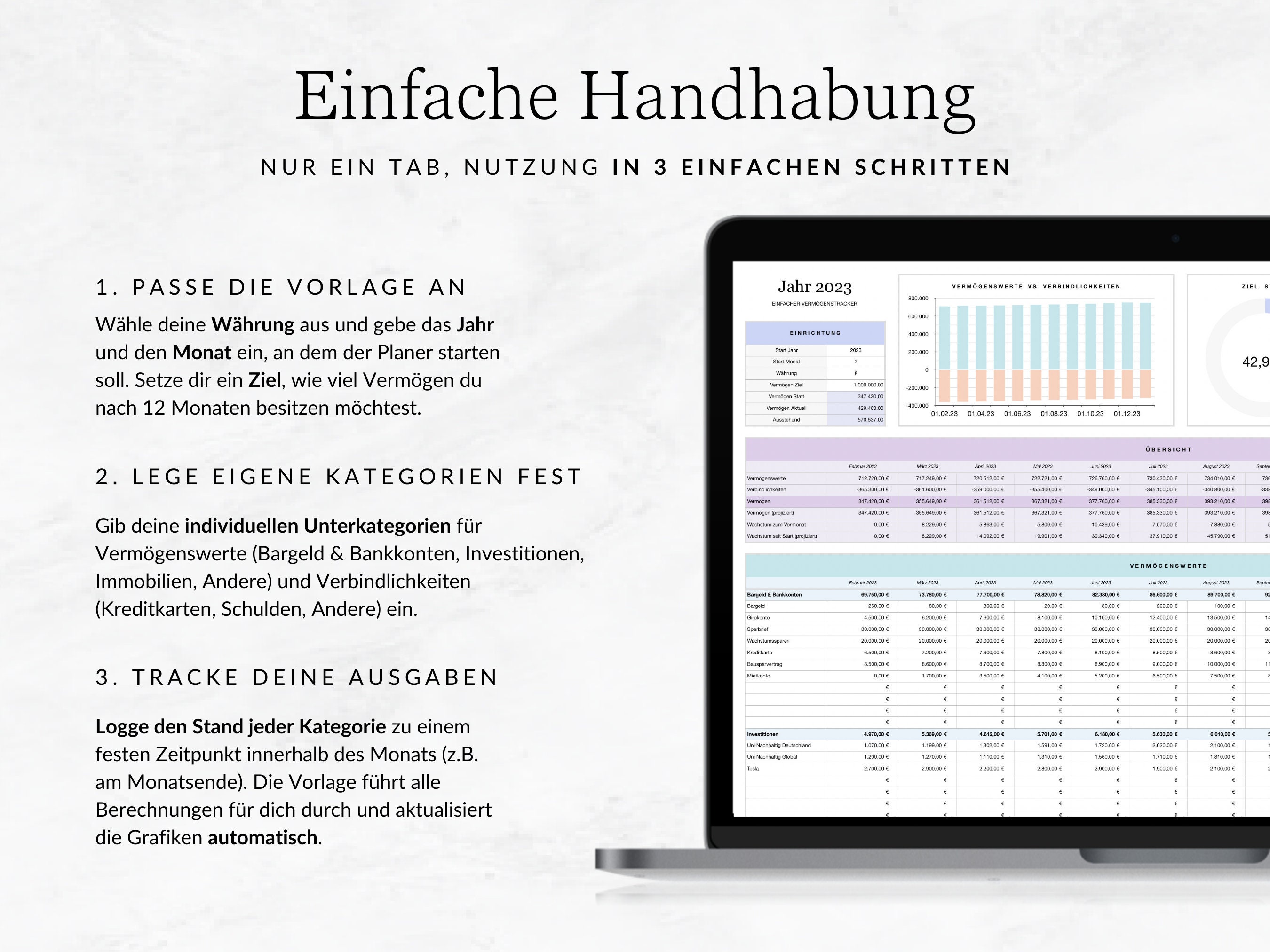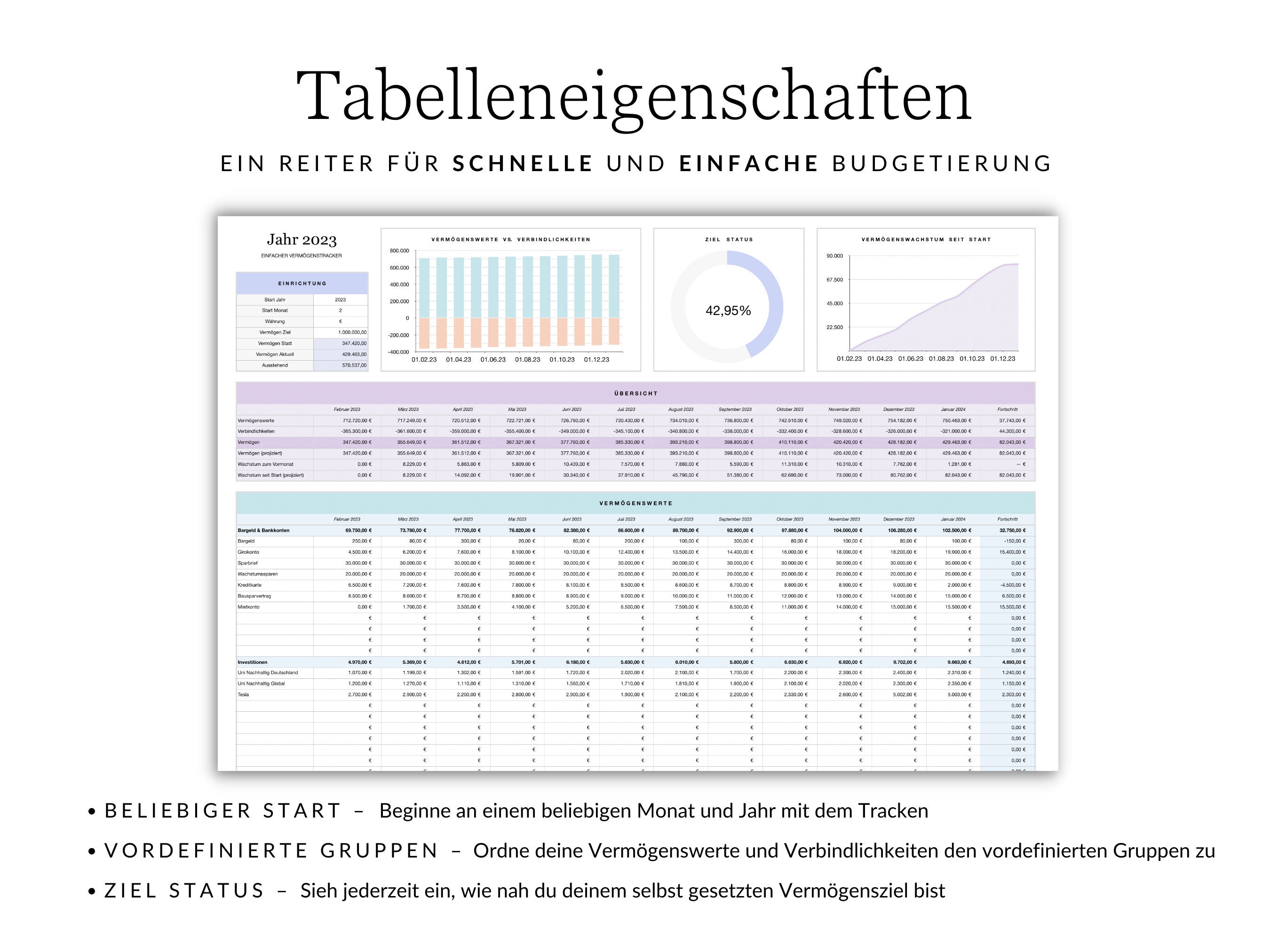 This budget spreadsheet helps you keep better track of your finances. The wealth tracker simplifies your personal bookkeeping and helps you build wealth in the long term.