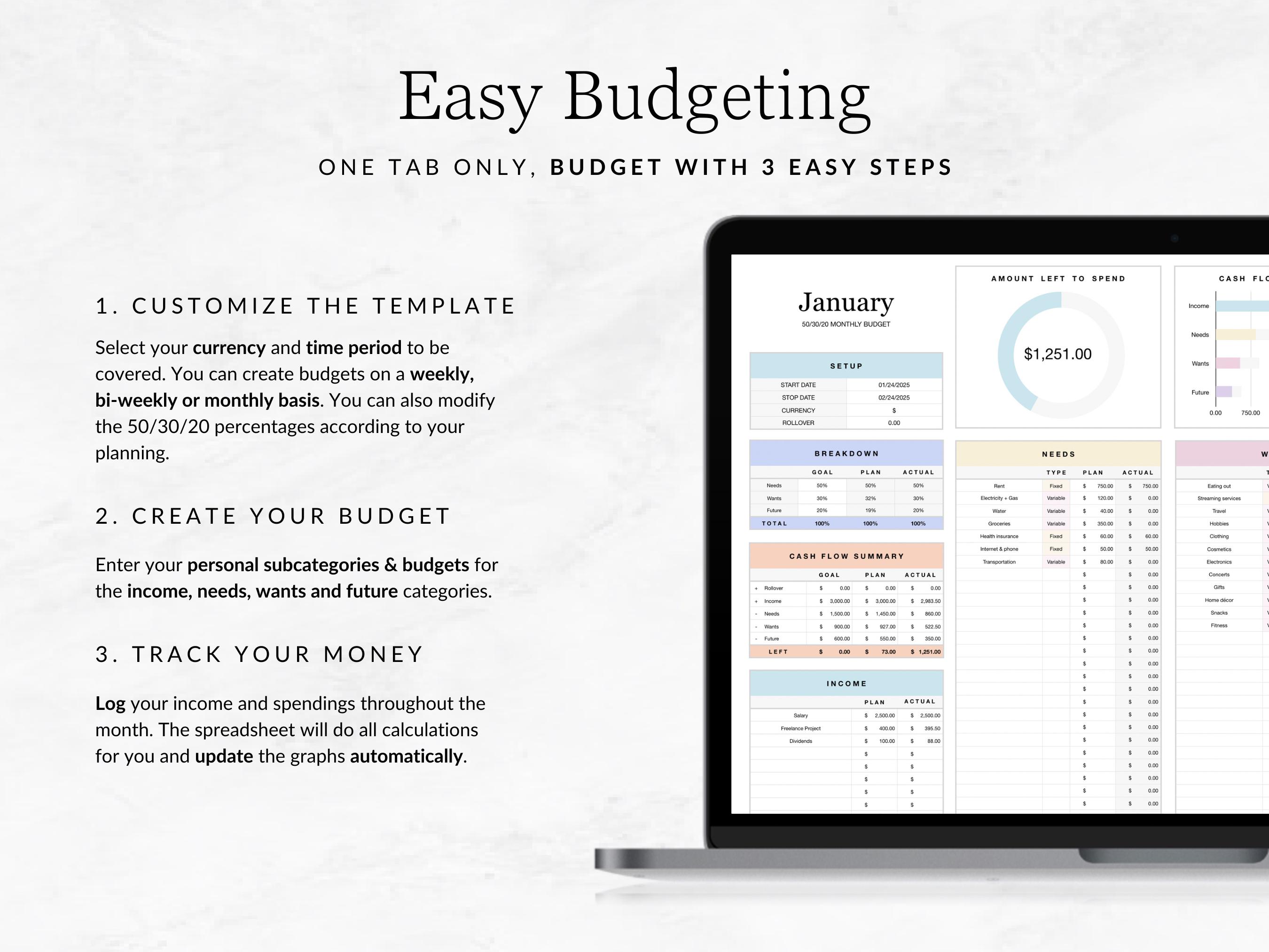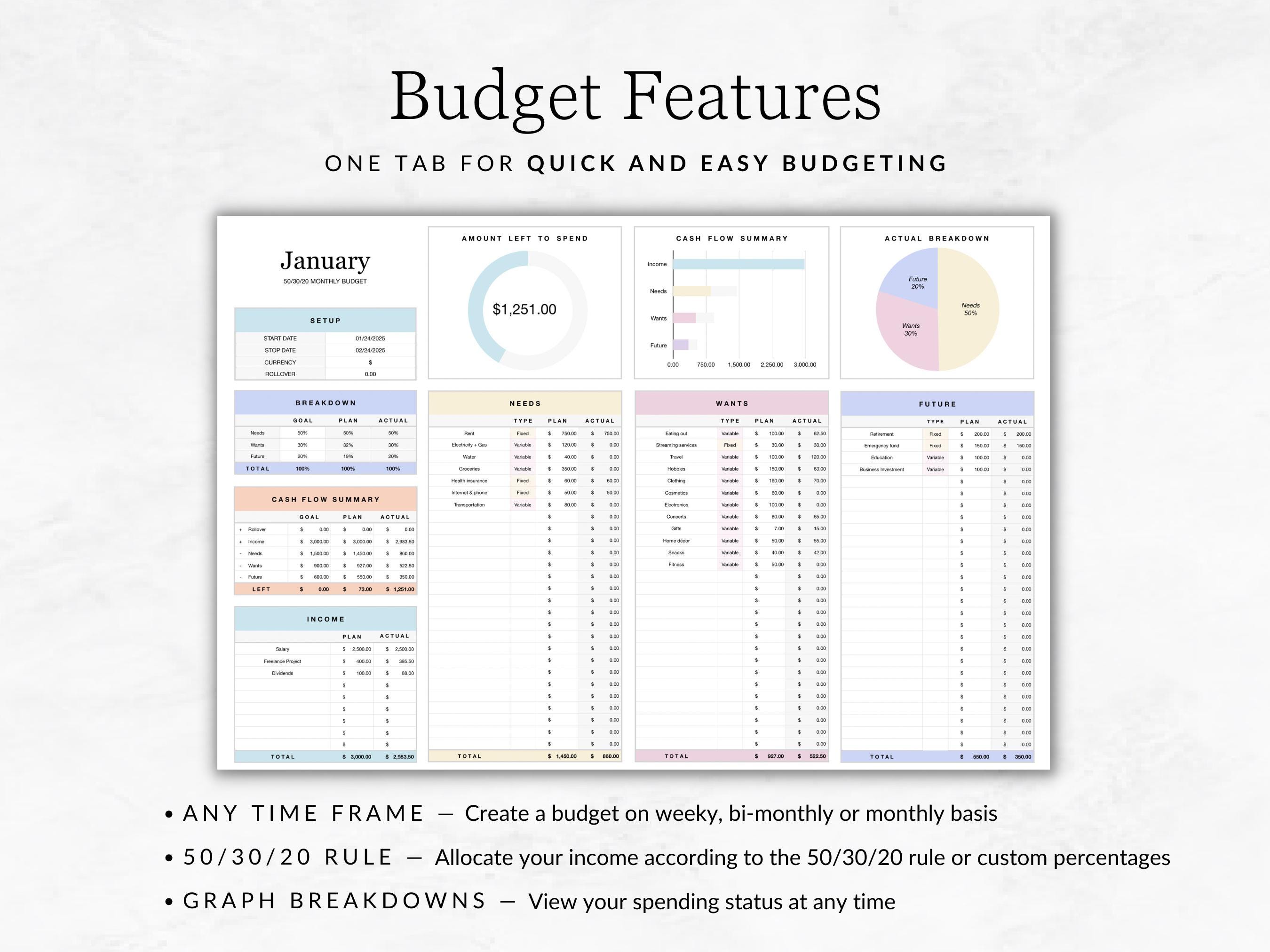 ☆ Tab #1: Simple 50 30 20 Budget